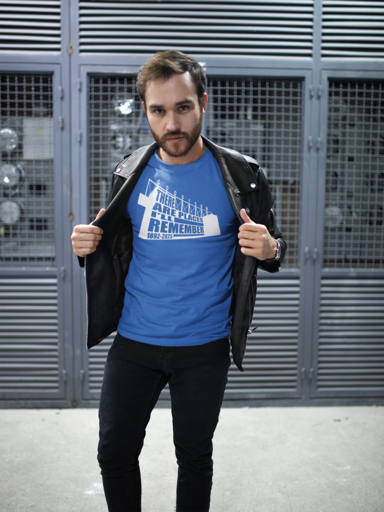“There Are Places I’ll Remember” – Goodison Park A sentimental tribute to our home since 1892. Featuring the silhouette of the stadium and lyrics that resonate with every Scouse soul, this shirt is a “musical love letter” to the museum of memories we call home.