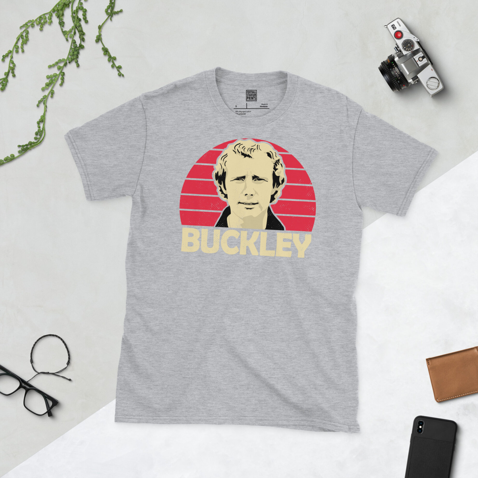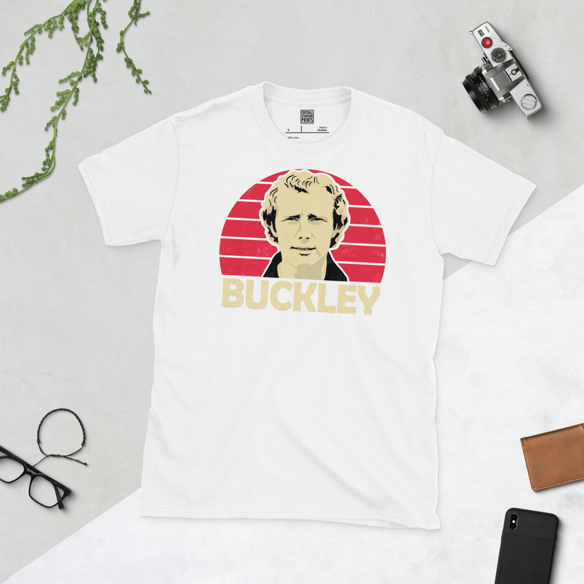 Commemorate a true giant of the lower leagues with this high-definition Alan Buckley T-shirt. The design features a striking red sunburst backdrop, capturing Buckley during his prime as the focal point of the Saddlers’ attack. Finished with bold BUCKLEY typography, this shirt is a must-have for any fan who witnessed the era of “Buckley Ball” or simply wants to honour the club’s greatest-ever servant.