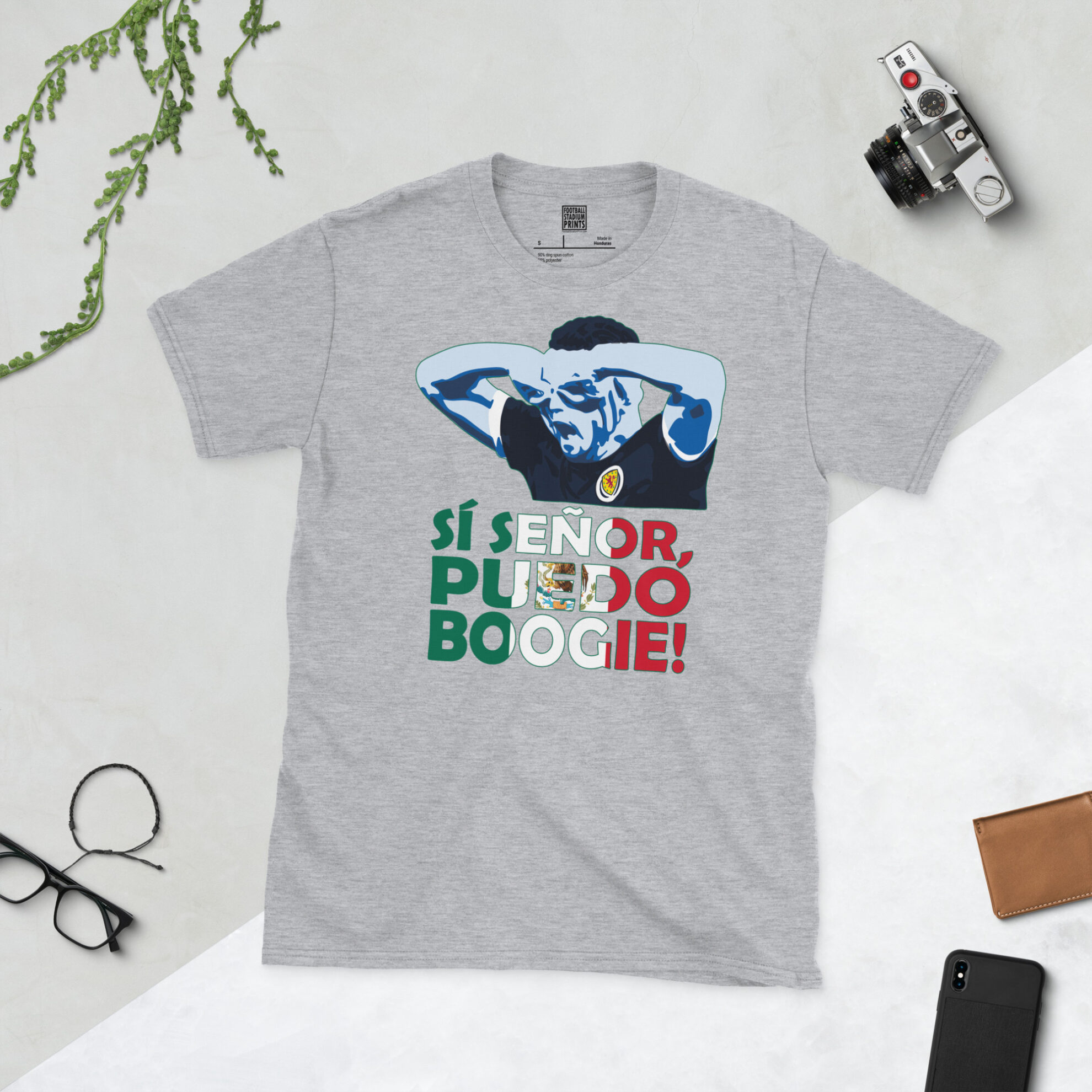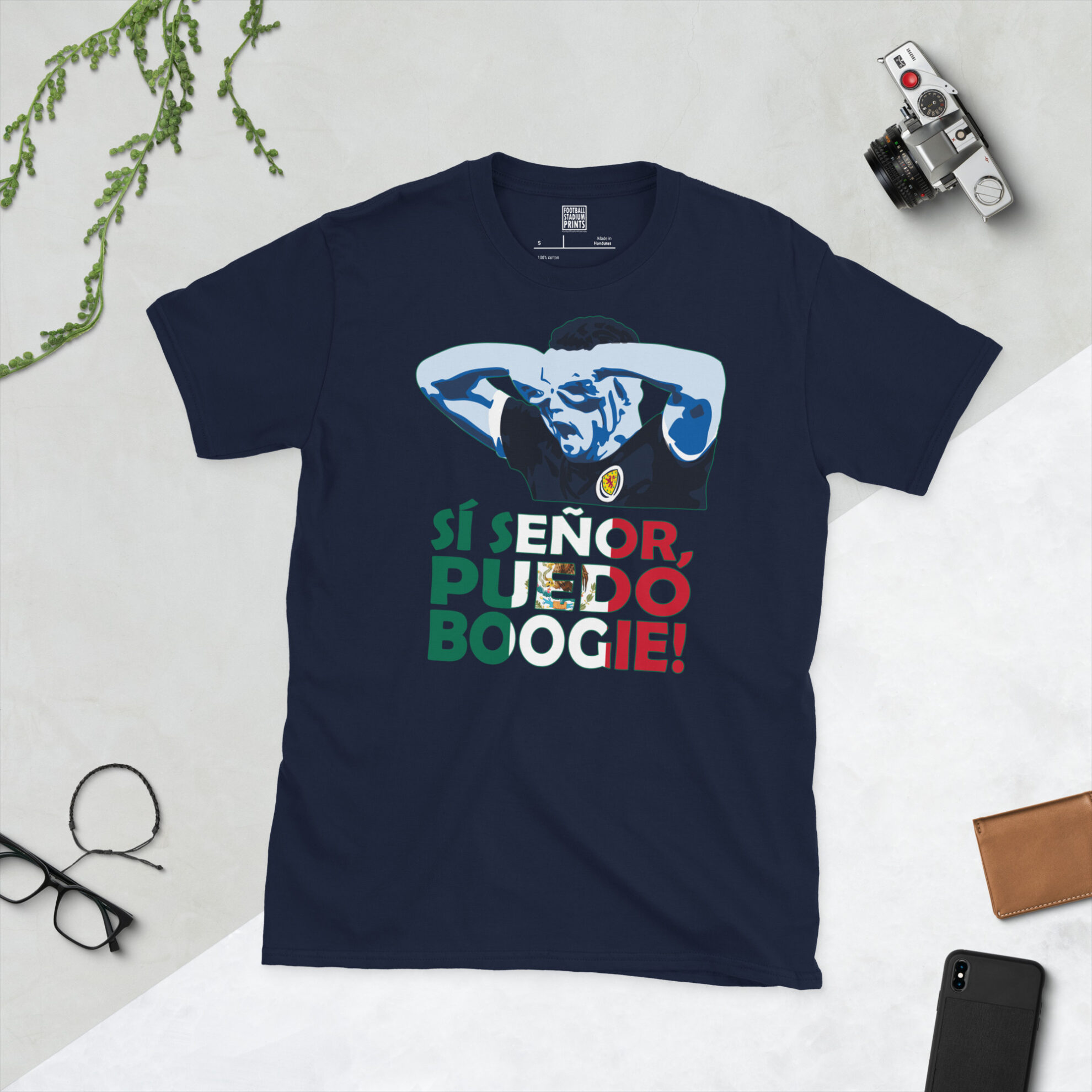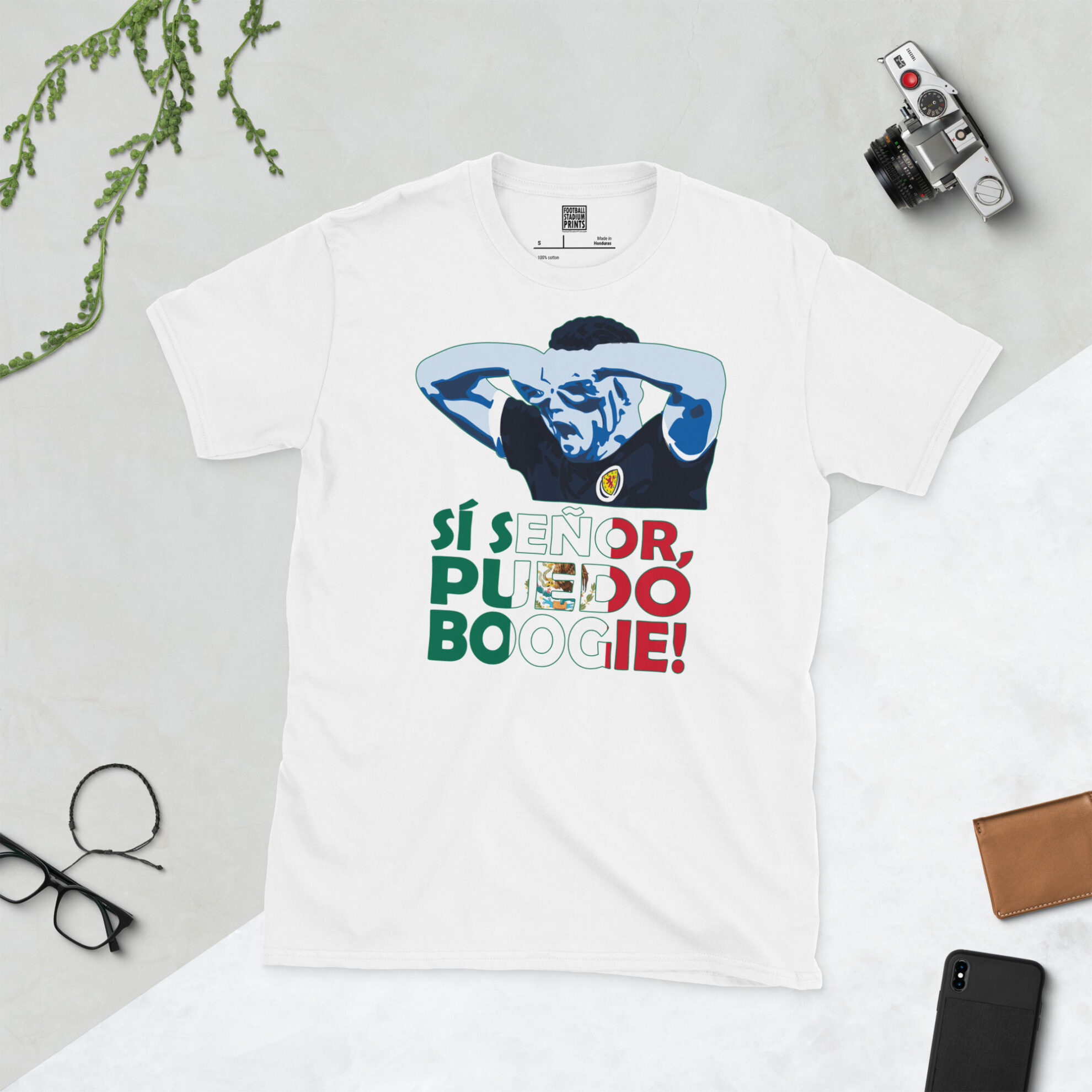 Commemorate Scotland’s qualification for the 2026 World Cup with this superb John McGinn T-Shirt! The design features an artistic illustration of the midfielder performing his famous “specs” celebration, with the memorable, Mexican-themed phrase: “Si Senor, puedo boogie” boldly displayed. This is a brilliant, internationally-minded twist on the unofficial Scottish anthem, perfectly marking the Tartan Army’s qualification for the World Cup in the USA, Canada, and Mexico.