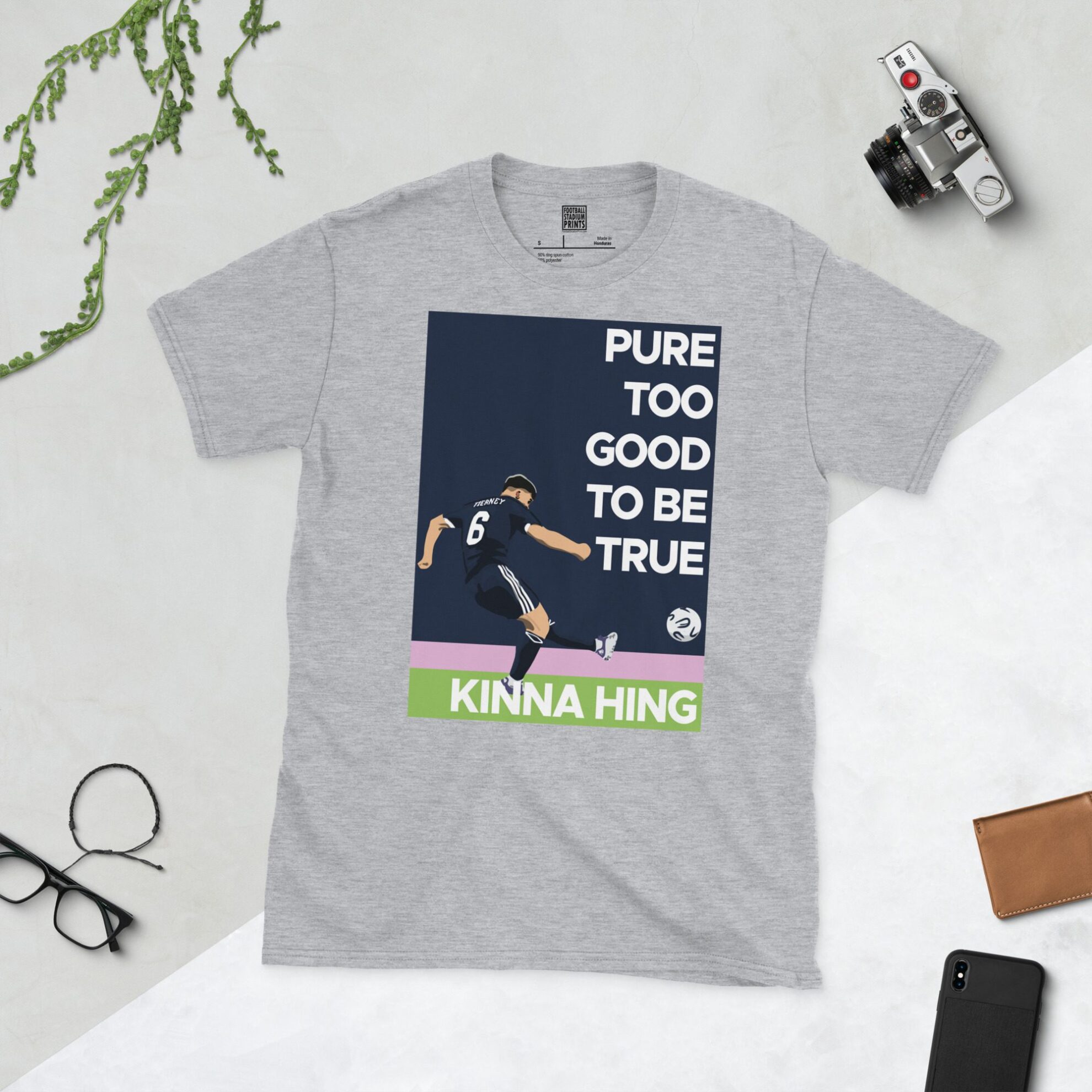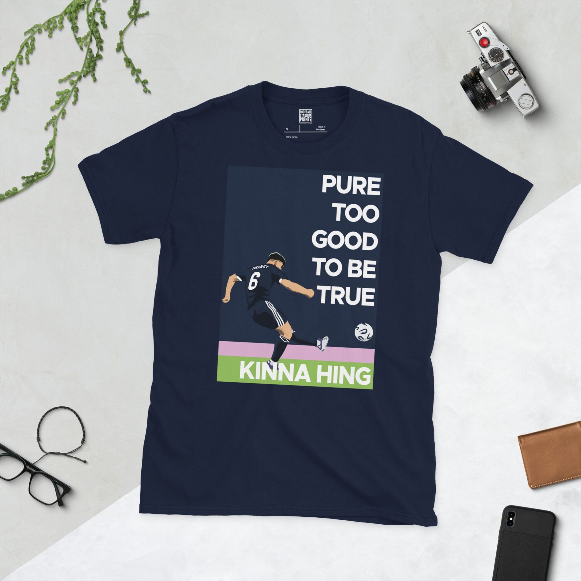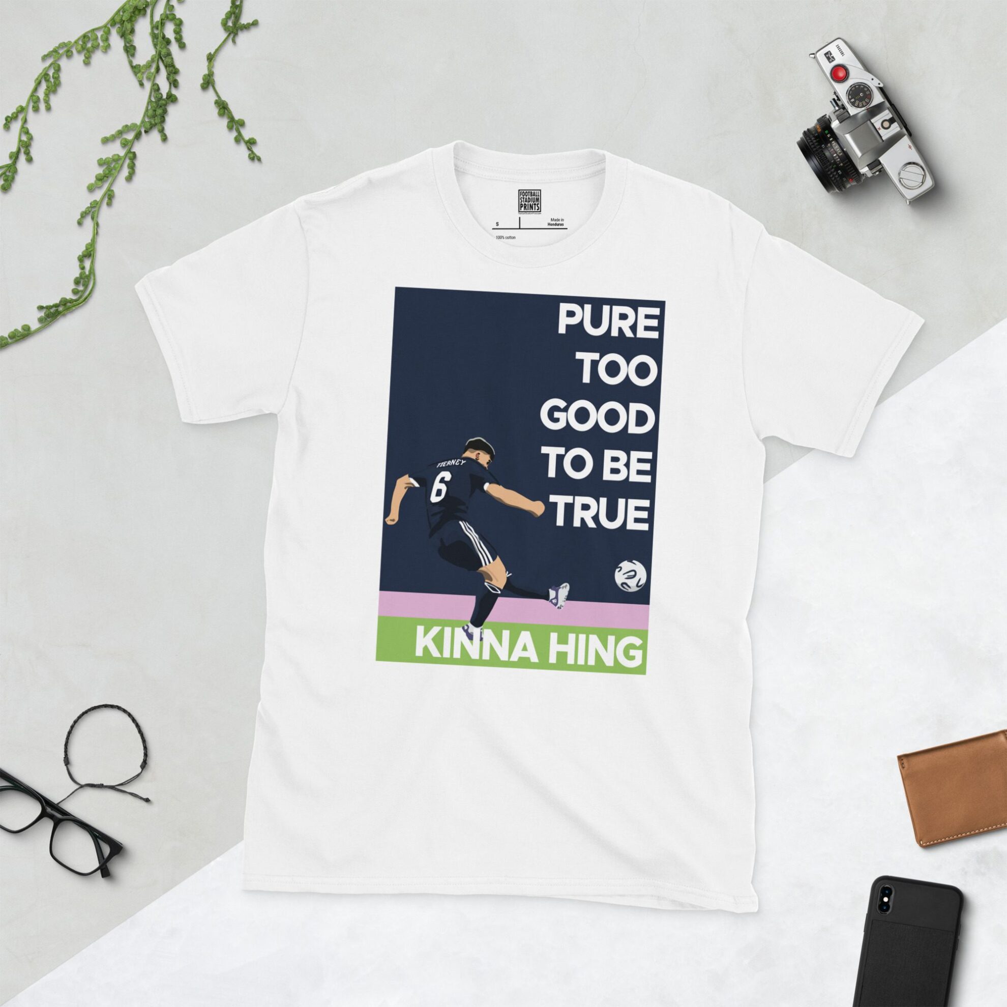 Commemorate the decisive moment that sent Scotland to the World Cup with this striking Kieran Tierney T-Shirt! The design features an artistic illustration of the defender striking the ball, with his iconic post-match words “PURE TOO GOOD TO BE TRUE KINNA HING” boldly integrated into the graphic.