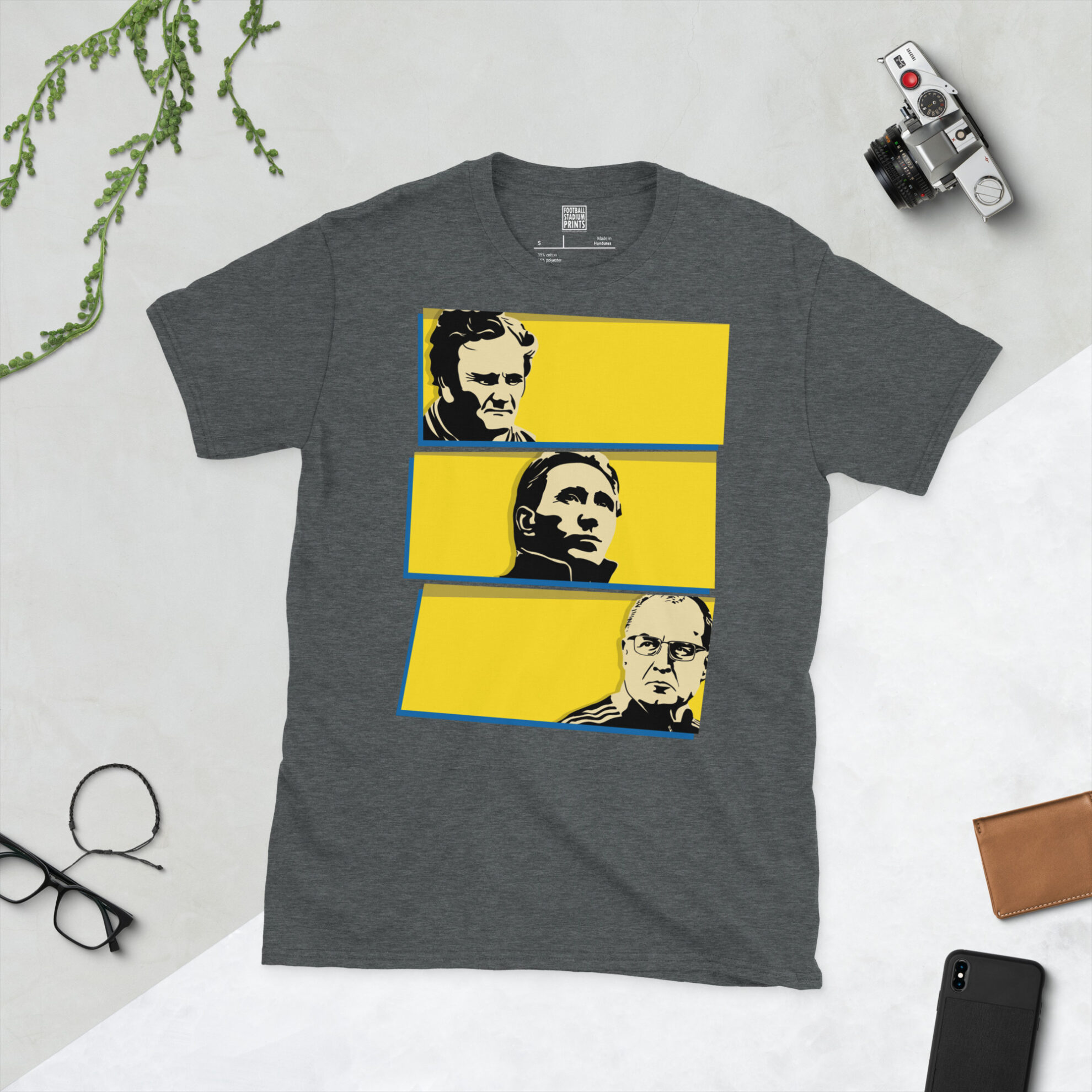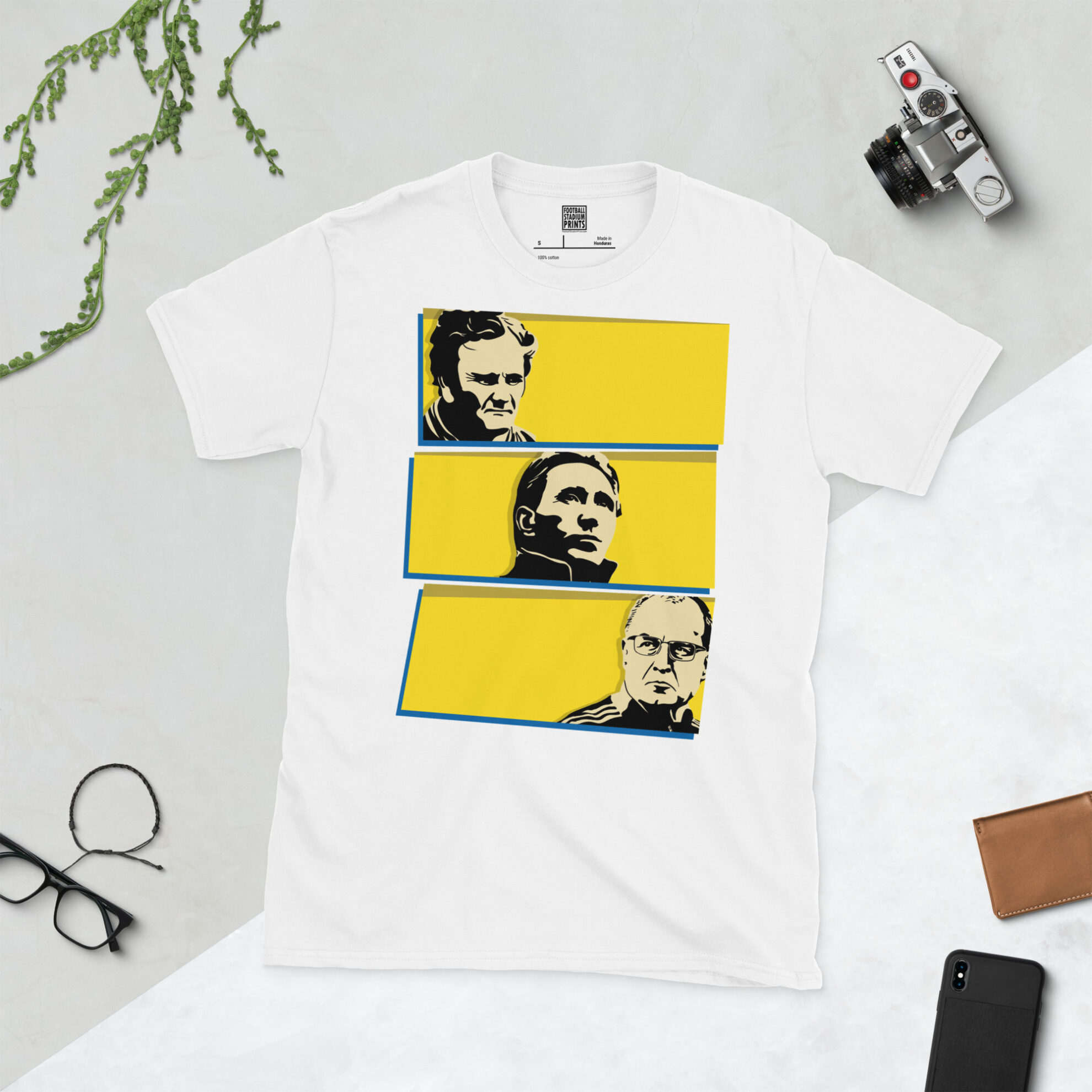 Leeds United Manager Legends T-Shirt. Revie, Wilkinson and Bielsa Tee.