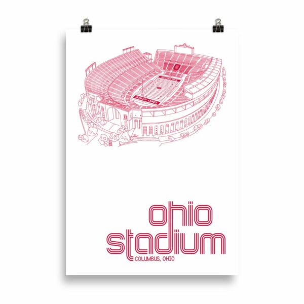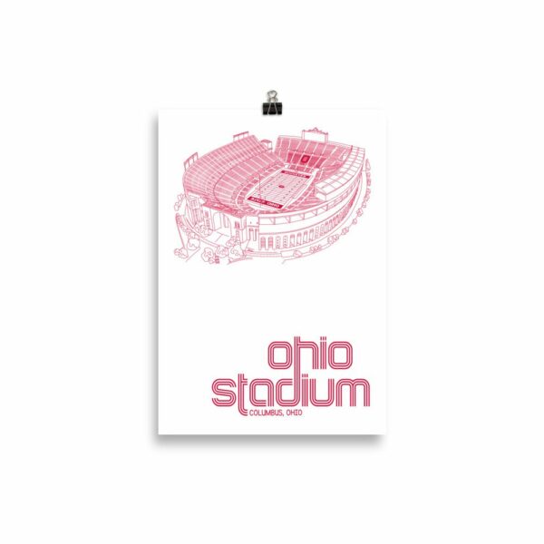 Ohio Stadium, Columbus, Ohio, White and Red Print.