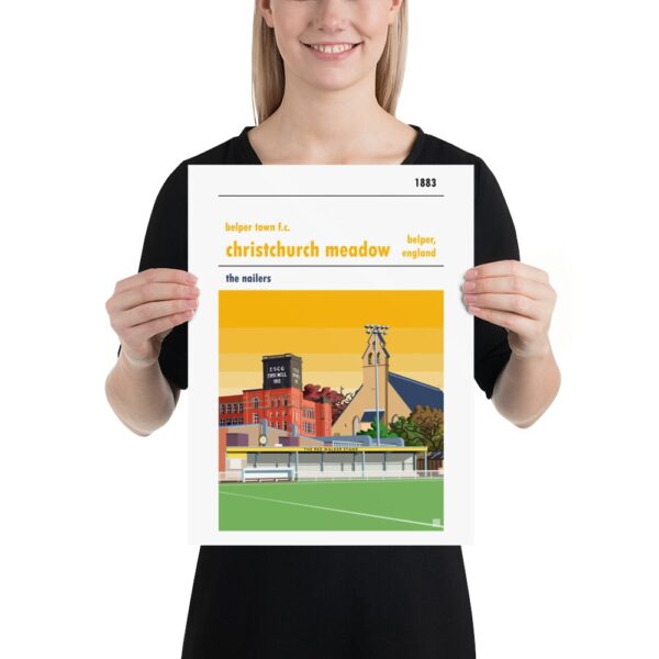 Retro look Christchurch Meadow, Belper Town FC, yellow Print.
