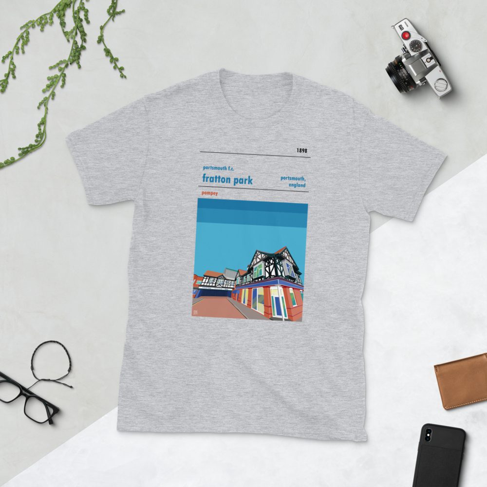 Retro Look Fratton Park, Portsmouth FC, Short-Sleeve Unisex T-Shirt.