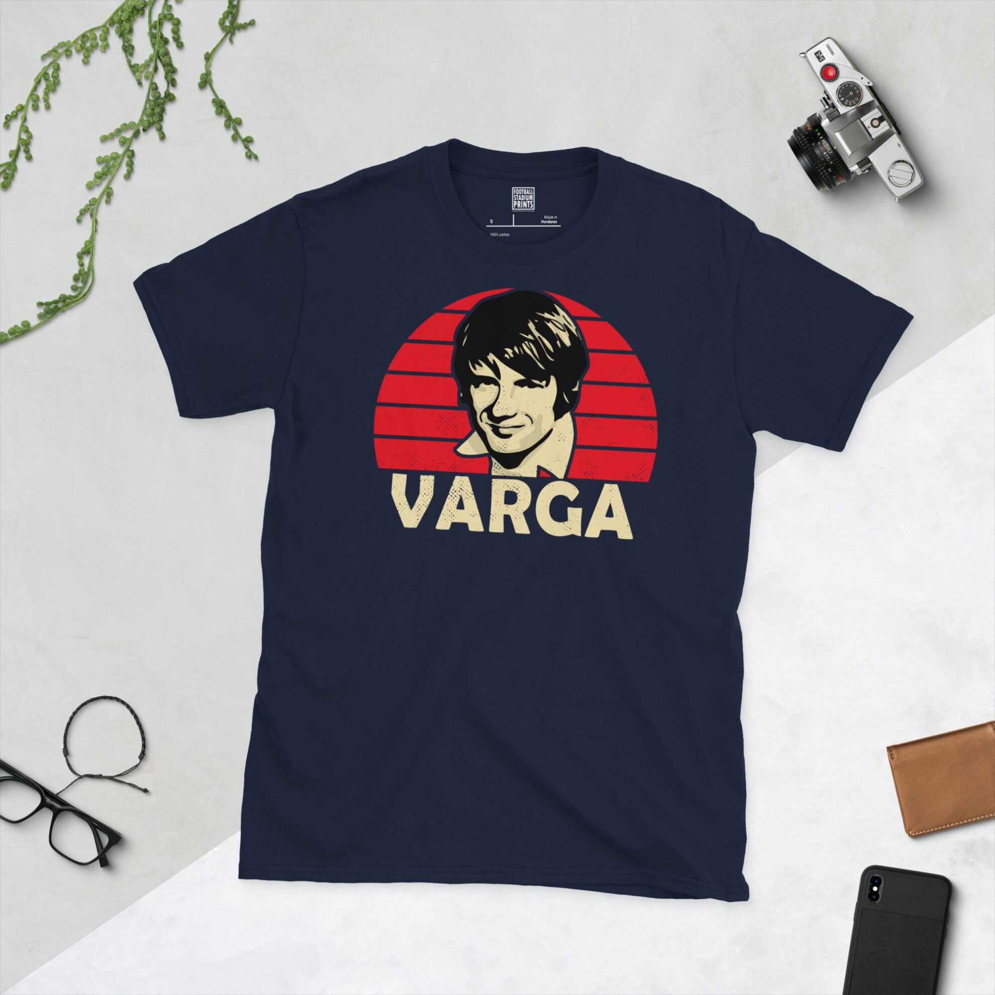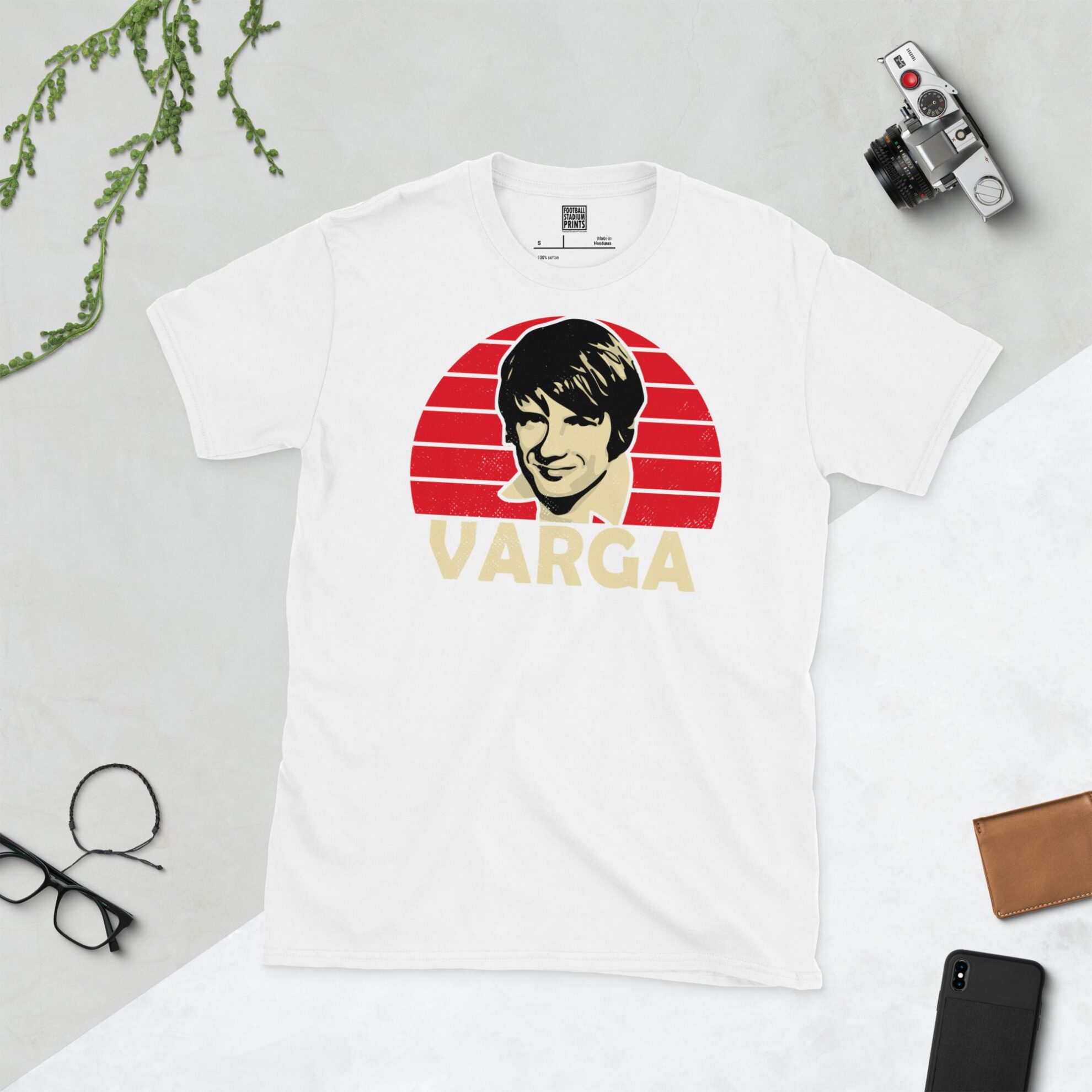 Honour a true Aberdeen cult hero with our Zoltan Varga Legend T-shirt! This striking design features a retro sunburst in bold Red behind the iconic Hungarian midfielder, with his name, VARGA, displayed prominently below the portrait.